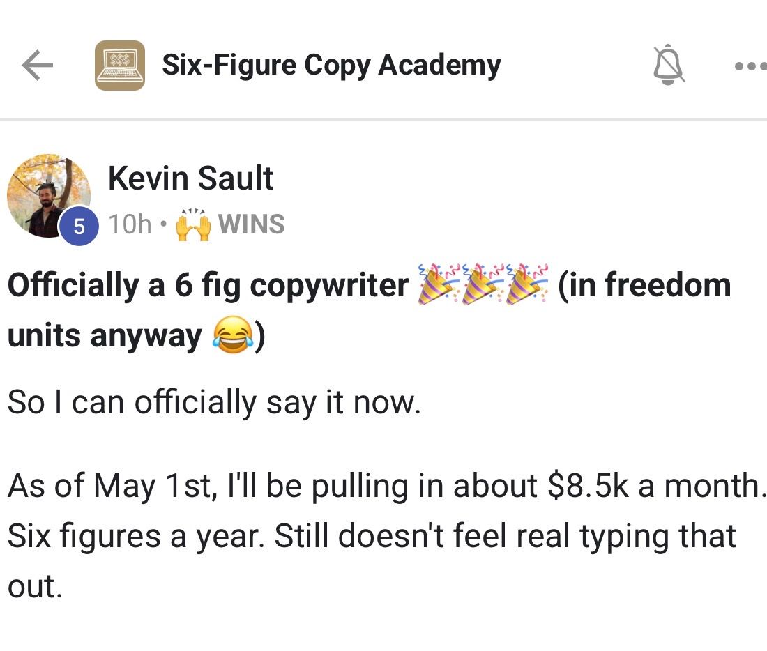 The Six-Figure Copy Academy is the proven path to become a $10k/month copywriter.