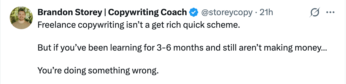 Here’s the thing - I don’t care if you’re offended. I care that you make money as a copywriter and build the life of your dreams. My mission is to help 1 million people make a full time income with freelance copywriting.