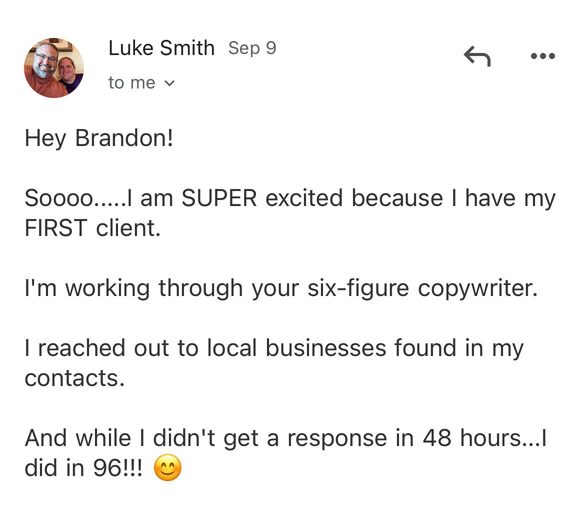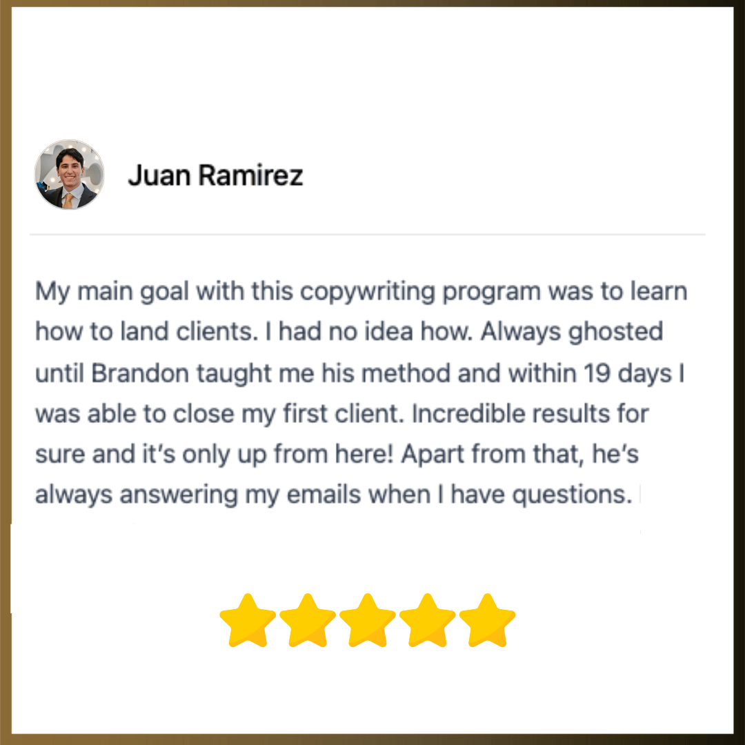 Through my Six-Figure Copywriter Course (your 90 day roadmap to your first $5,000 month), weekly coaching calls, a community of ambitious copywriters, copy feedback, client-getting challenges (and cash prizes), and a daily copy job board.
