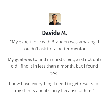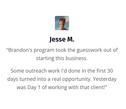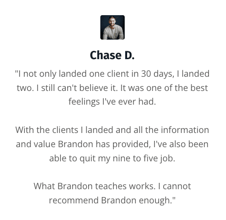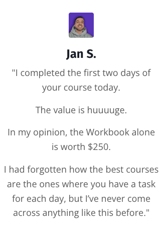 It’s my complete freelance copywriting system to land your first client by Christmas (~70% of my students who take this course get client #1 within 30 days).