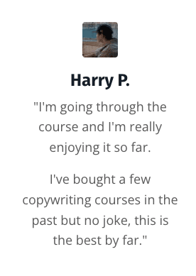 Which is not typical online. Many copywriting programs offer NO guarantees (which means there’s no accountability if their course is bad).