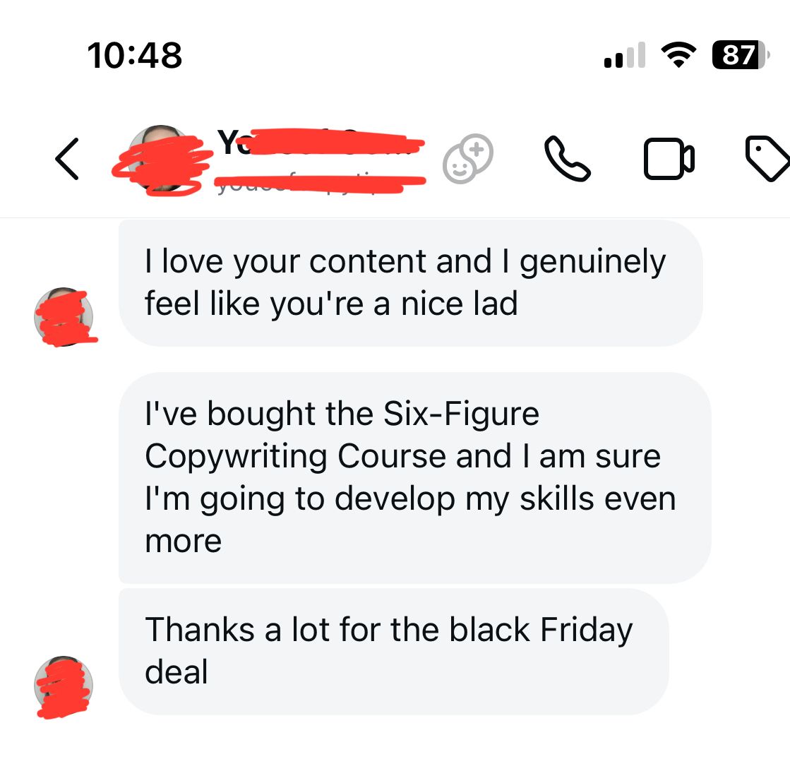 Dozens of people already picked up my copywriting course at the insane 68% off Black Friday deal.
