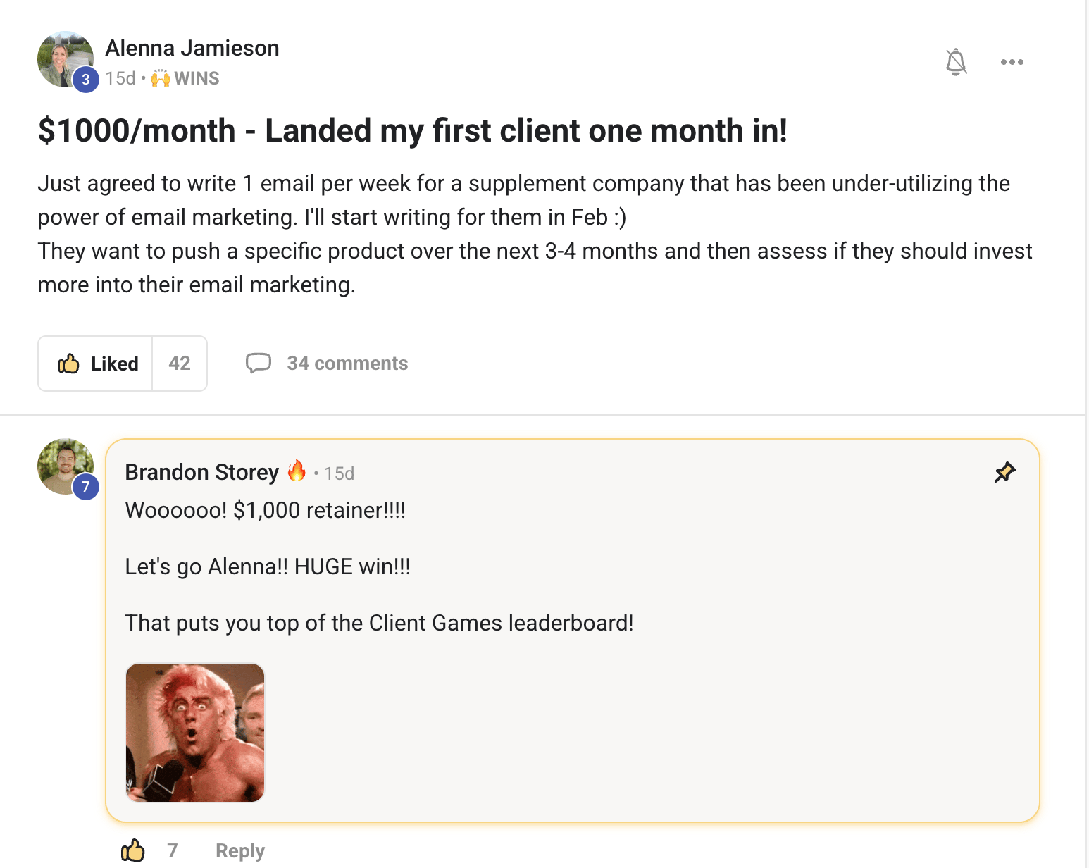 #3) Alenna J. landed her first $1,000/month retainer… in her first month as a copywriter