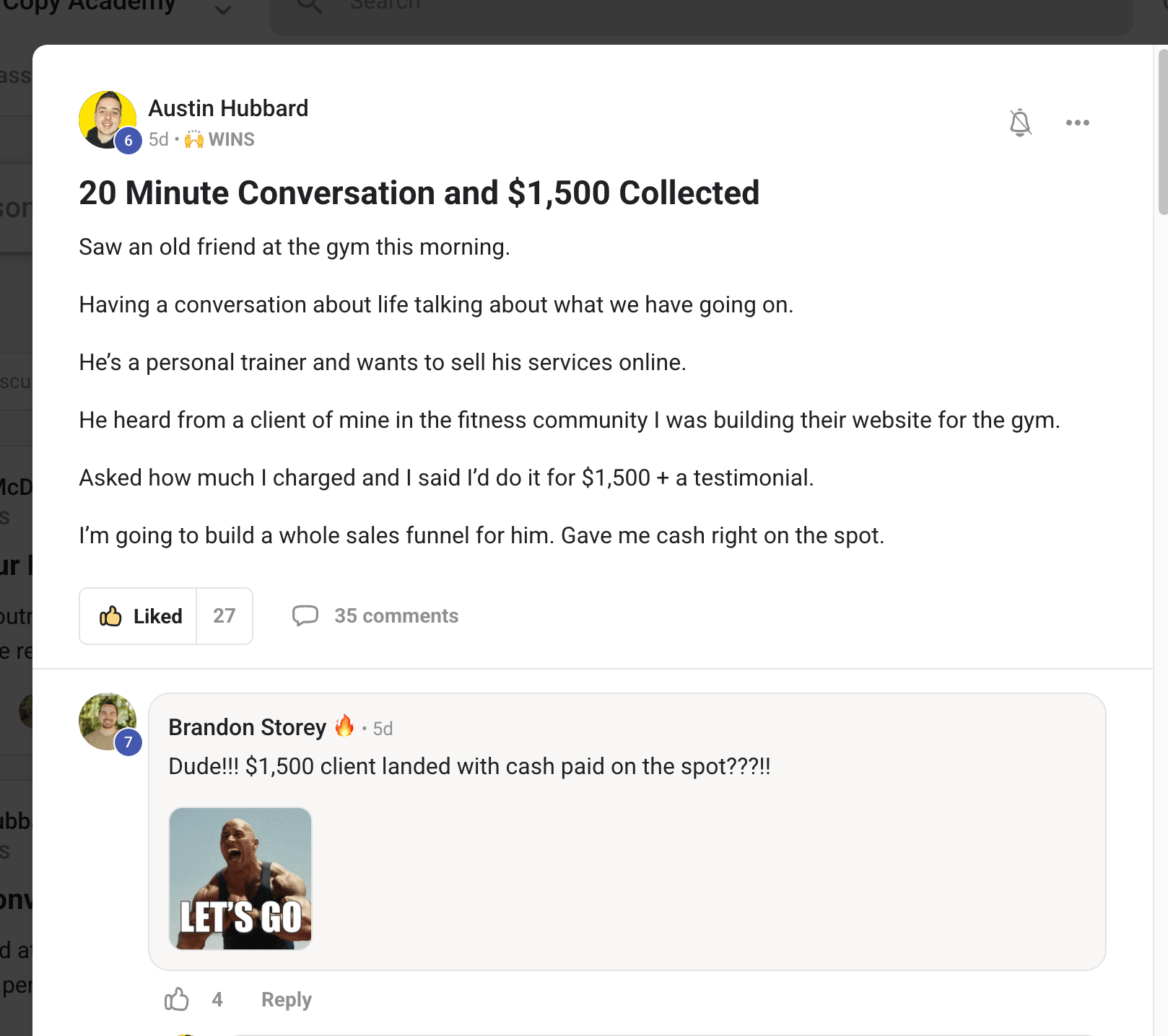 #2) Austin H. just pitched a client at his gym and the guy paid him $1,500 cash on the spot