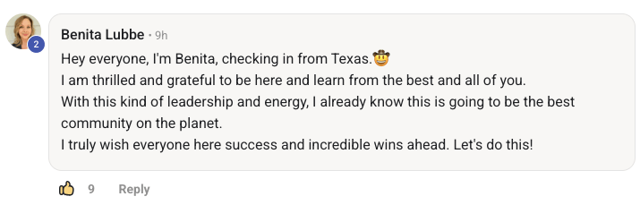 A community of 100 ambitious copywriters to keep you motivated to keep going instead of struggling as a lone-wolf copy-wannabe.