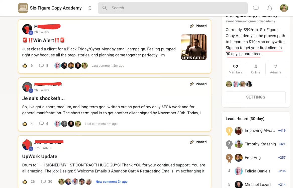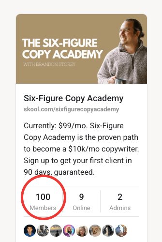 We just hit 98/100 members in the Six-Figure Copy Academy.