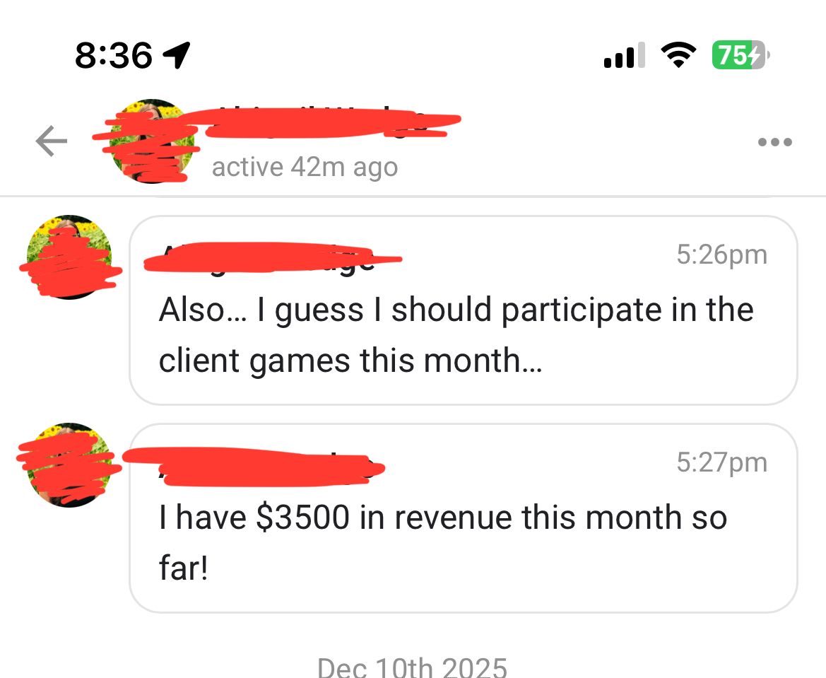Every week, you get on a call with me. I look at your copy, your outreach, your pipeline, your pricing. And I tell you exactly what to fix and what to do next.