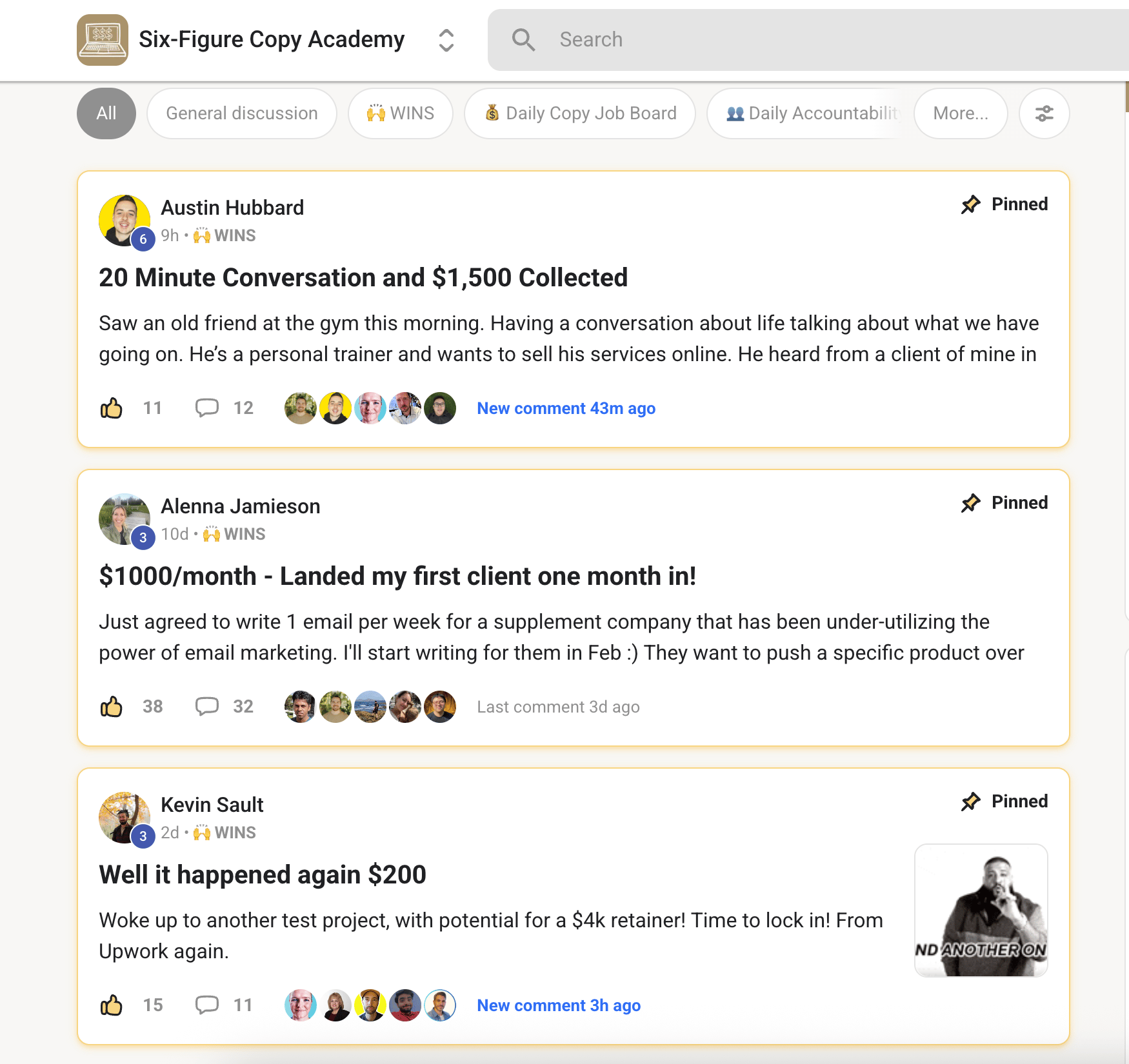Here are just a few students inside the Six-Figure Copy Academy who have landed clients in January so far: