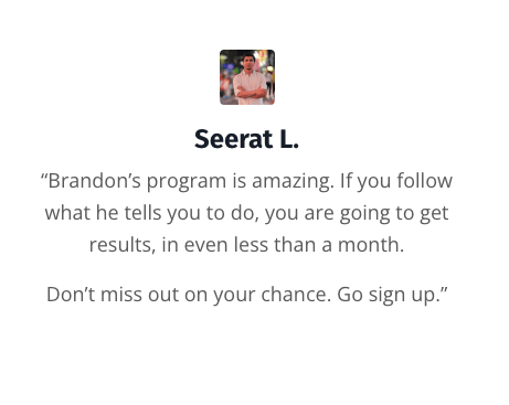 With the Six-Figure Copywriter, about 70% of my students get their first client WITHIN the first month…