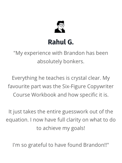 It’s not based on theory, but on what actually made me a $9,000/month copywriter within 12 months (and $10-$15k/month copywriter since). And it’s what’s working for my (now) 700+ copywriting students.