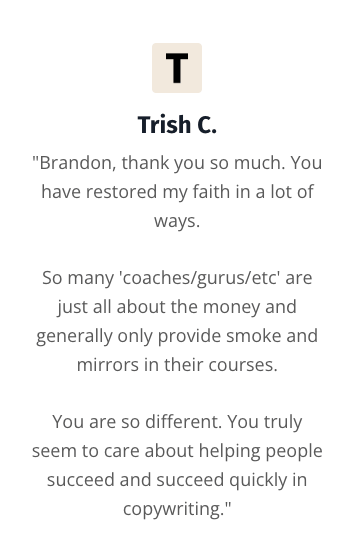 Which is not typical online. Many copywriting programs offer NO guarantees (which means there’s no accountability if their course is bad).